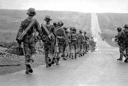 Đoàn quân đi chập chùng làn mưa bụi.
